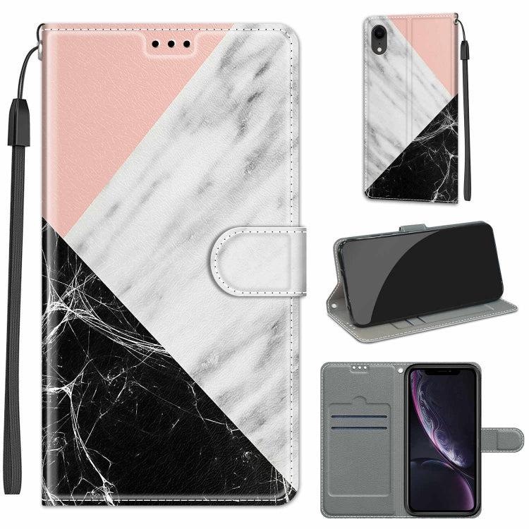 Funda para iPhone Xr Cuero de Pu Cierre Magnético Tapa Horizontal Soporte Ranuras para Tarjetas (Rosa Blanco Negro)