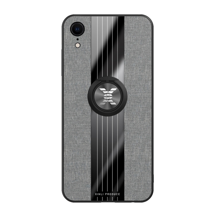 Estuche Protector TPU Xinli para iPhone Xr a Prueba de Golpes con Textura de Tela y Soporte para Anillo (Gris)