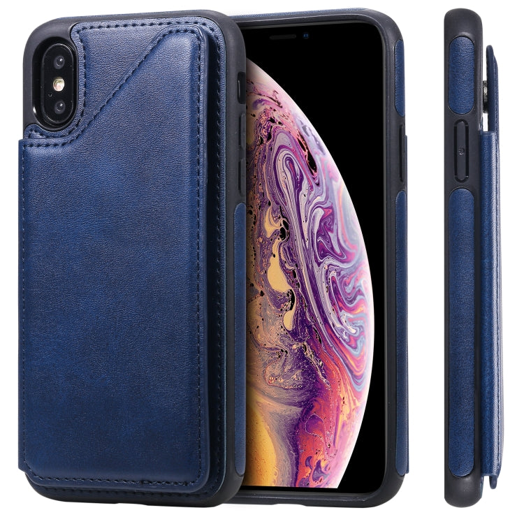 Funda Protectora para iPhone Xs Textura de Pantorrilla a Prueba de Golpes con Soporte y Ranuras para Tarjetas (Azul)