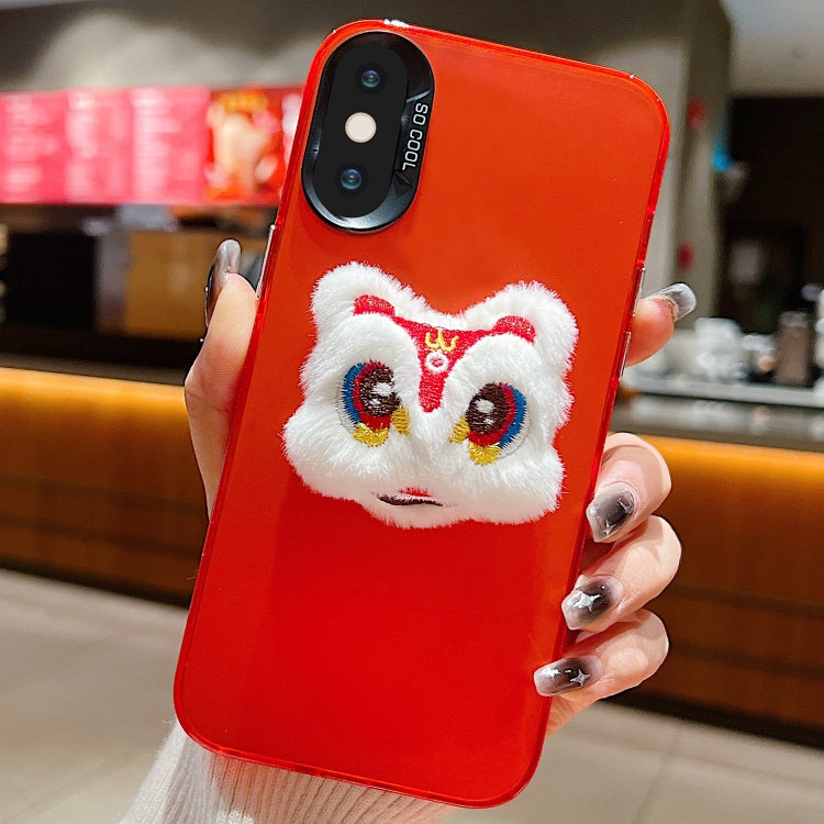 Funda para Teléfono iPhone Xs Max Lion Dance Plush Doll Año Nuevo (León Blanco con Espalda Roja)