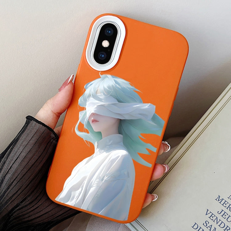 Estuche híbrido para iPhone Xs Max Blindfold Girl PC y TPU (Naranja)