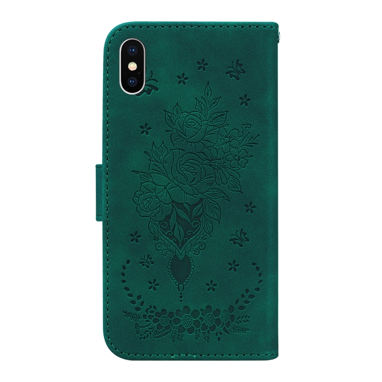 Estuche para teléfono iPhone Xs Max Butterfly Rose Cuero en Relieve (Verde)