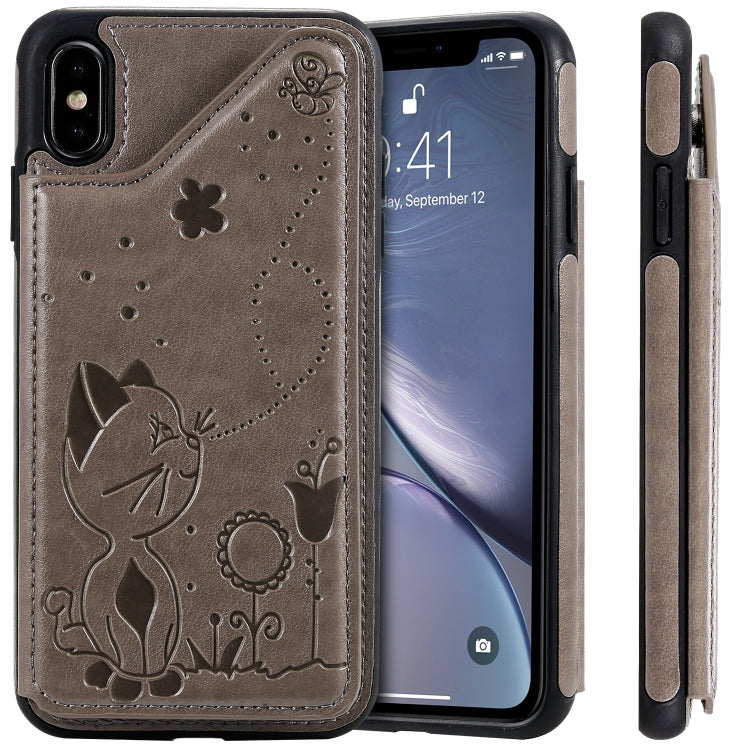 Estuche protector para iPhone Xs Max Cat Bee relieve patrón a prueba de golpes con ranuras para tarjetas marco de fotos (Gris)