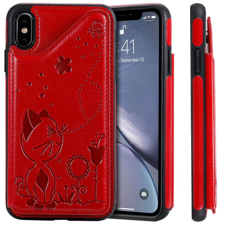 Estuche Protector para iPhone Xs Max Cat Bee Relieve Patrón a Prueba de Golpes con Ranuras para Tarjetas (Rojo)