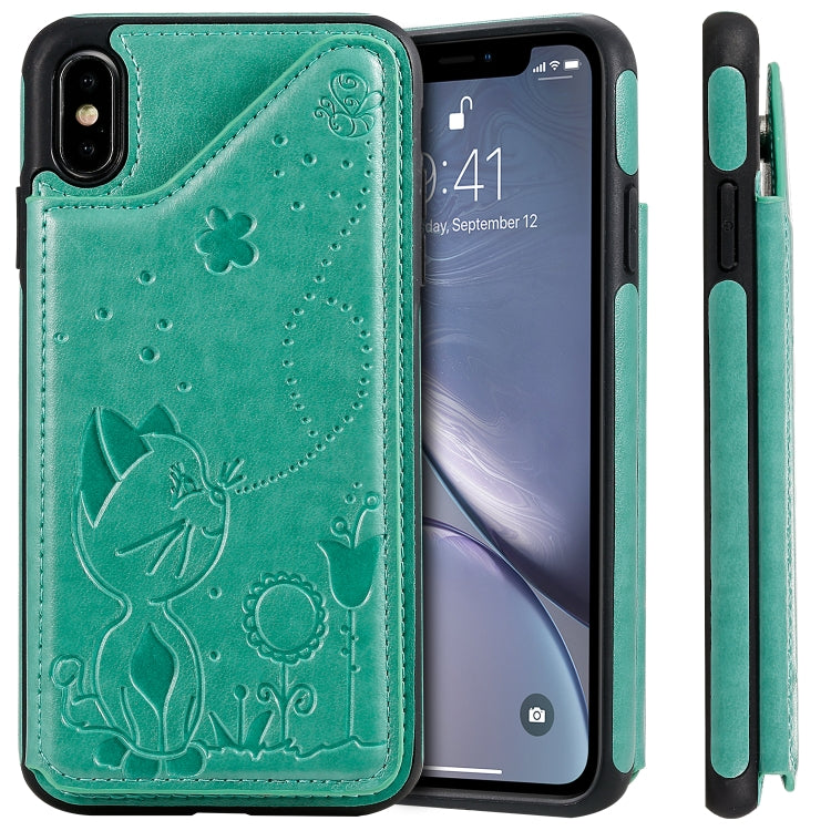 Estuche Protector iPhone Xs Max Cat Bee Relieve Patrón a Prueba de Golpes con Ranuras para Tarjetas (Verde)