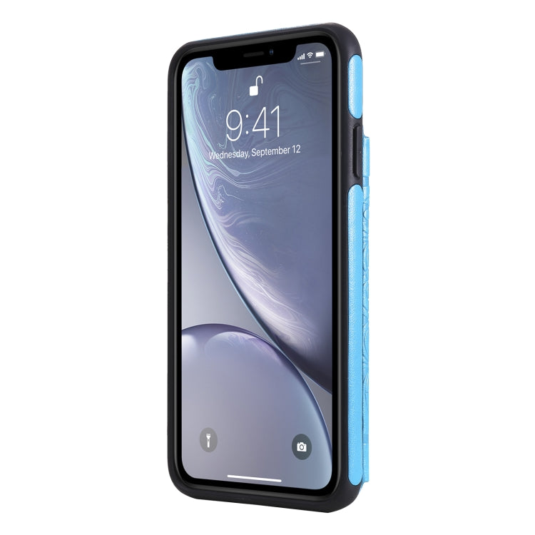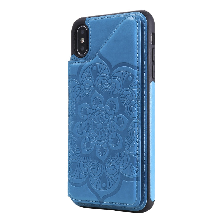 Estuche Protector para iPhone Xs Max Flower Embossing Pattern a Prueba de Golpes con Soporte y Ranuras para Tarjetas (Azul)