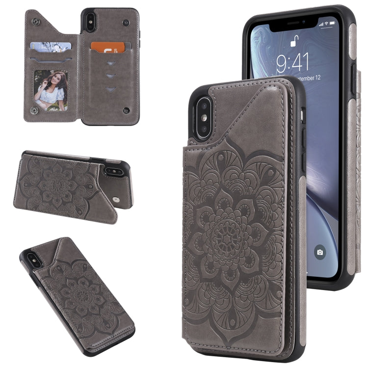 Estuche Protector para iPhone Xs Max Flower Embossing Pattern a Prueba de Golpes con Soporte y Ranuras para Tarjetas y Marco de Fotos (Gris)