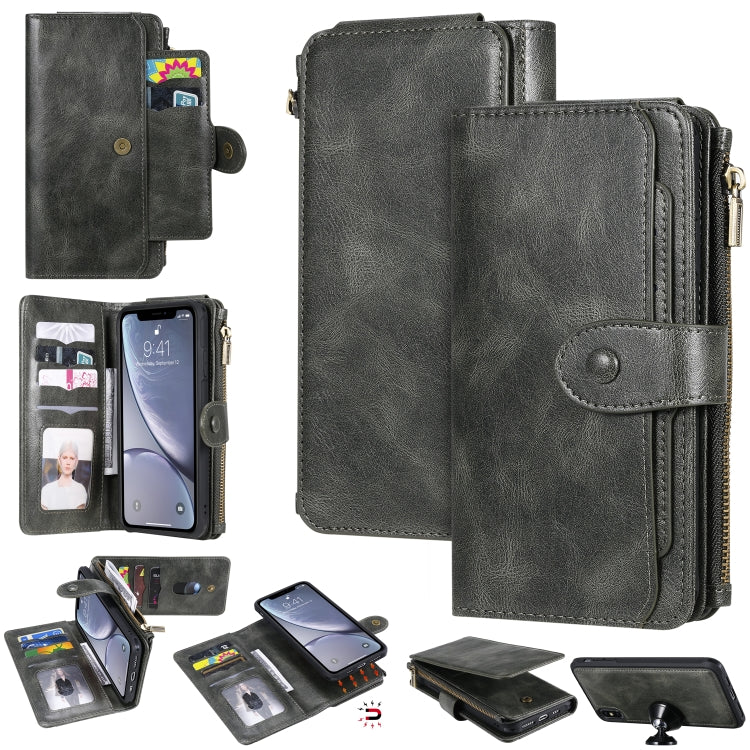 Funda para iPhone Xs Max Multifuncional Retro Desmontable Magnético Horizontal Flip Cuero con Ranuras, Soporte, Billetera y Marco de Fotos (Verde Oscuro)