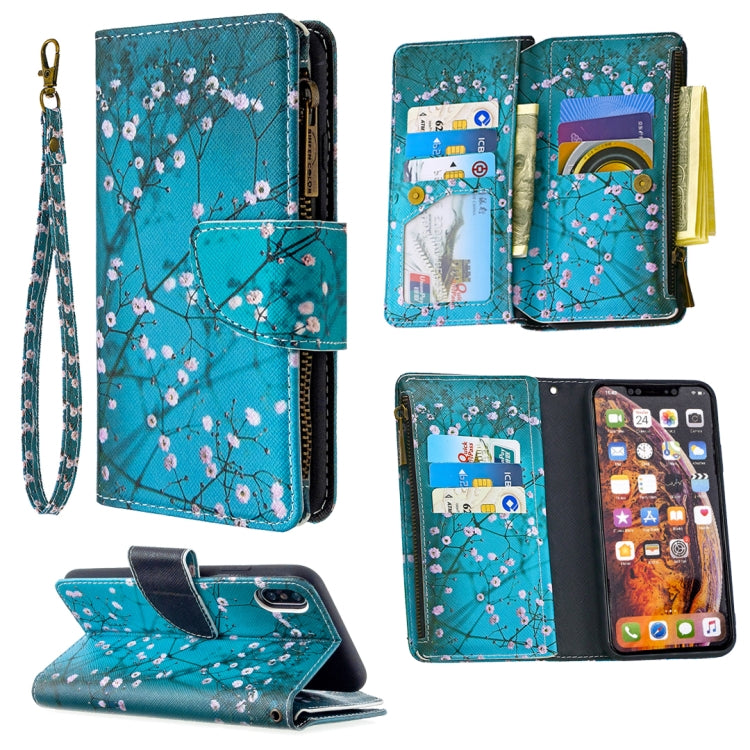Funda de Cuero para iPhone Xs Max Patrón Dibujo Cremallera con Tapa Horizontal Soporte Ranuras para Tarjetas y Billetera (Flor del Ciruelo)