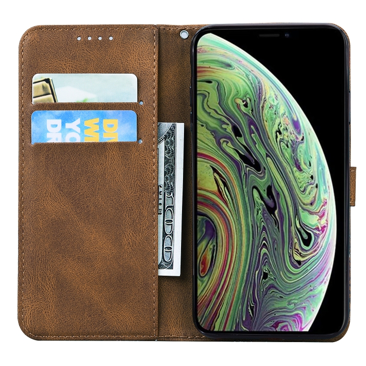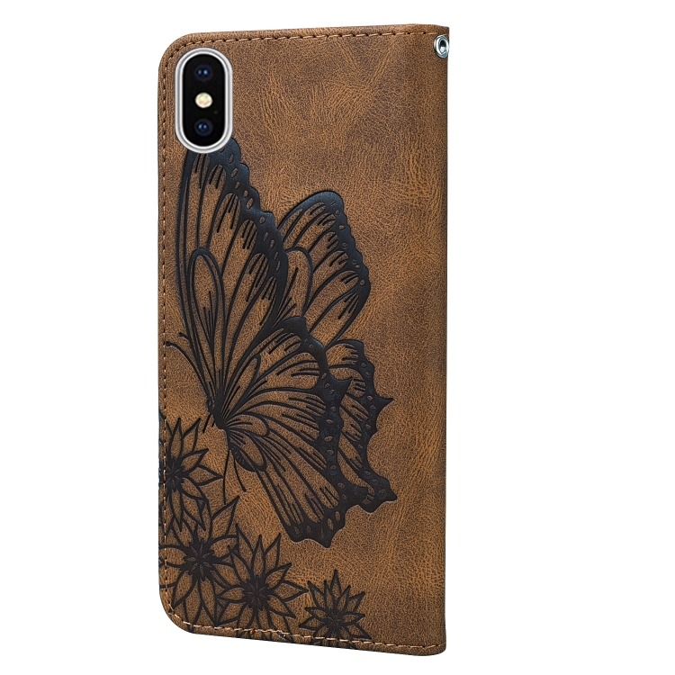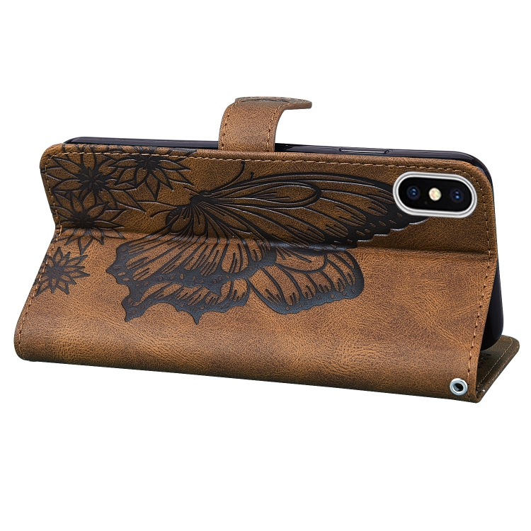 Funda de Cuero iPhone Xs Max Retro Skin Butterflies Embossing Soporte Ranuras Billetera (Marrón)