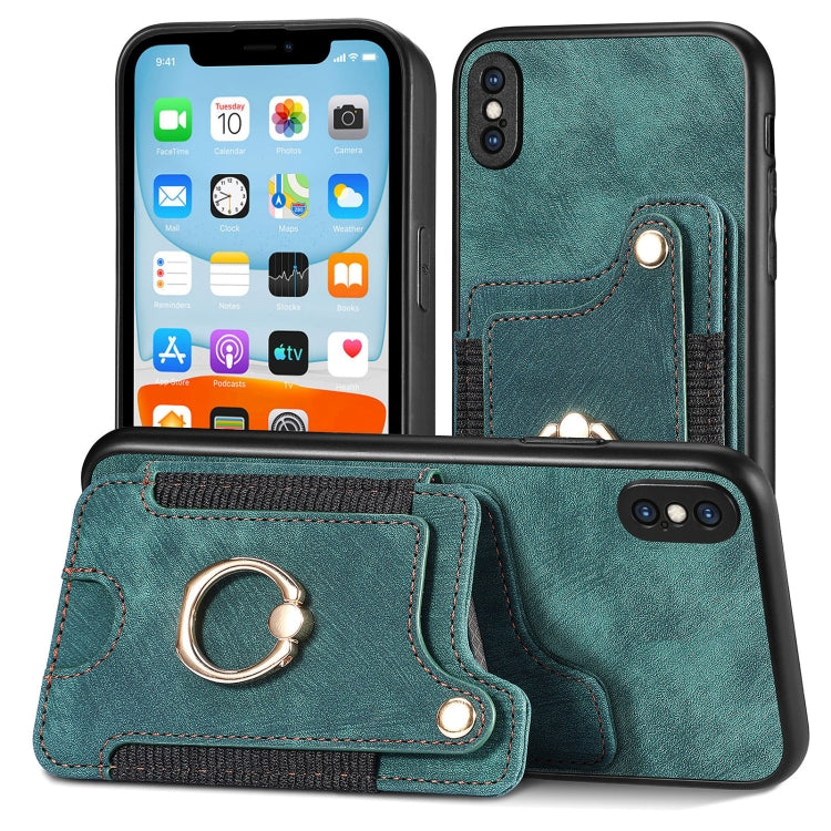 Funda para iPhone Xs Max Retro Skin-Feel Ring Multi-Card Wallet (Verde)