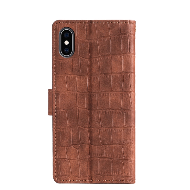 Funda para iPhone Xs Max Skin Feel Cocodrilo Textura Cierre Magnético Flip Horizontal PU Cuero Soporte Ranuras Tarjetas Billetera (Marrón)