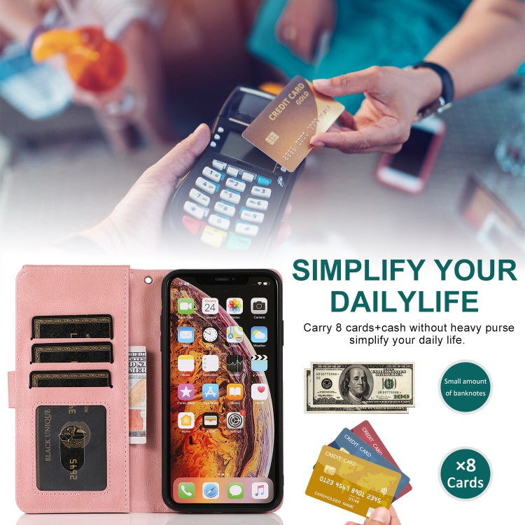 Estuche para iPhone Xs Max Skin-Feel Crazy Horse Texture Zipper Wallet Bag con Tapa Horizontal, Soporte, Ranuras para Tarjetas y Cordón (Oro Rosa)