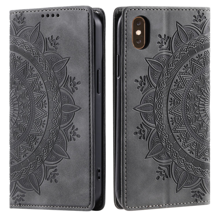 Funda para Teléfono iPhone Xs / S Totem Cuero Magnética En Relieve (Gris)