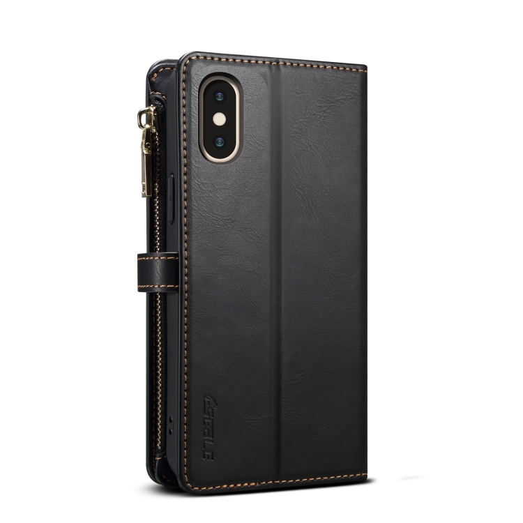 Funda para iPhone Xs y X Eseble Star Series Lanyard Zipper Wallet Rfid de Cuero (Negro)