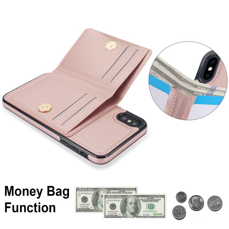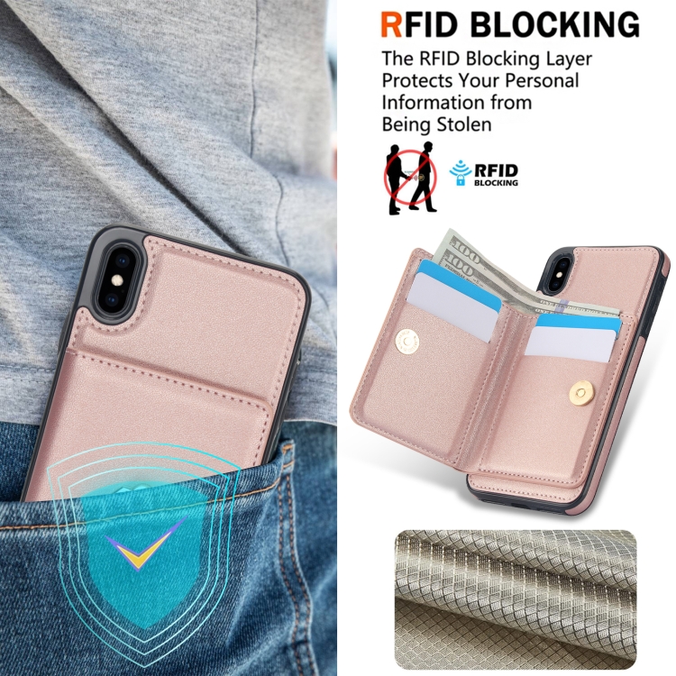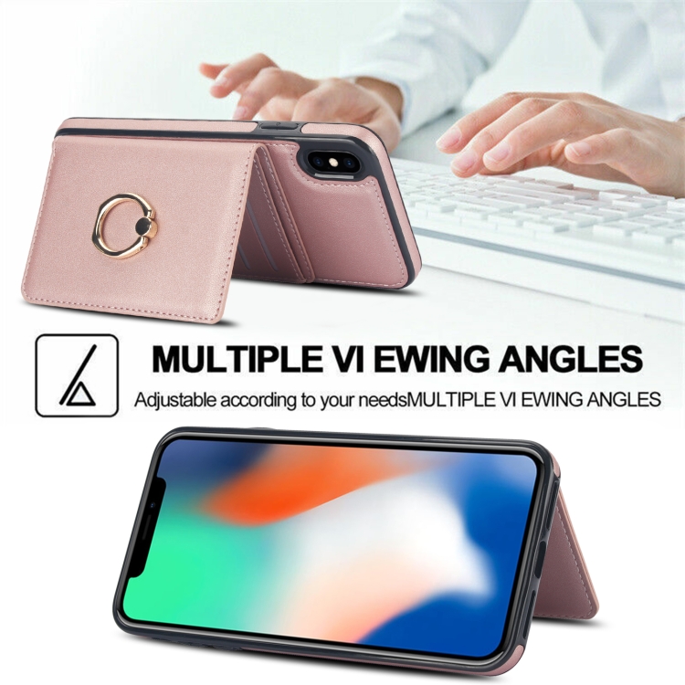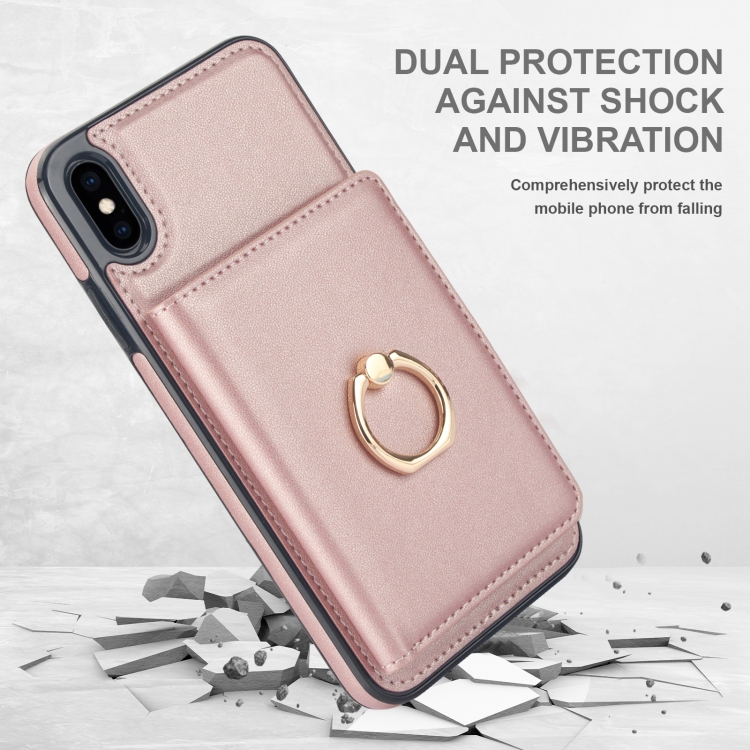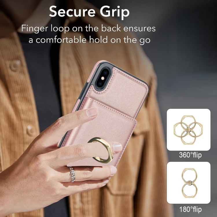 Estuche para Teléfono iPhone Xs / X con Soporte para Anillo y Tarjeta Antirrobo Rfid (Oro Rosa)