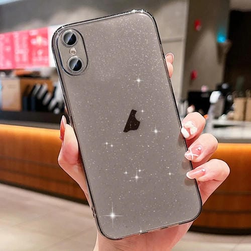 Estuche para Teléfono TPU iPhone Xs / X con Purpurina en Polvo (Negro Transparente)