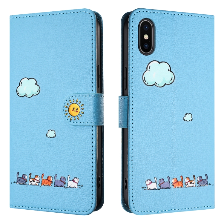 Funda para Teléfono iPhone Xs / X Cuero Gatos Dibujos Animados (Azul)