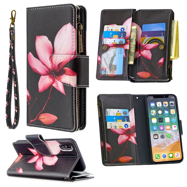 Funda de Cuero iPhone Xs X con Tapa Horizontal Soporte Ranuras Tarjetas Billetera (Lotus)