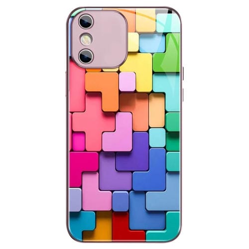 Caja de teléfono iPhone Xs X patrón ladrillos juguete vidrio a prueba de golpes (Rosa)