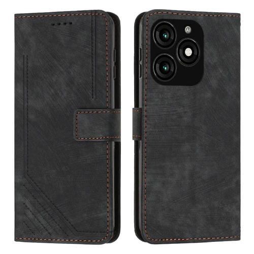 Funda de Cuero para Itel A70 Skin Feel con Patrón de Rayas y Cordón (Negro)