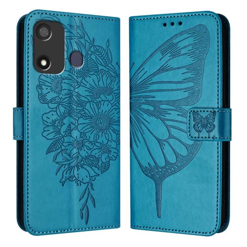 Funda de Cuero para Itel P17 / A27 con Mariposa en Relieve (Azul)