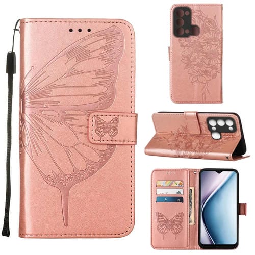 Estuche de Cuero para Itel P38 S17 S1661W Vision 3 con Tapa de Mariposa en Relieve (Oro Rosa)