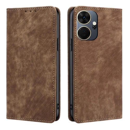 Funda de Cuero Magnética para Itel P55 + 4G con RFID y Cepillo Antirrobo (Marrón)