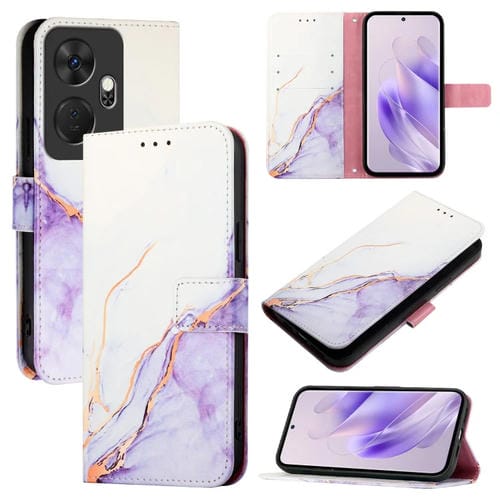 Funda para Teléfono Itel P55 + Pt003 de Cuero con Tapa y Patrón de Mármol (Blanco y Morado)