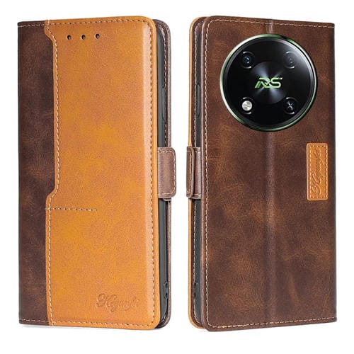 Funda para Itel Rs4 4G de Cuero con Hebilla Lateral y Color en Contraste (Marrón Oscuro)