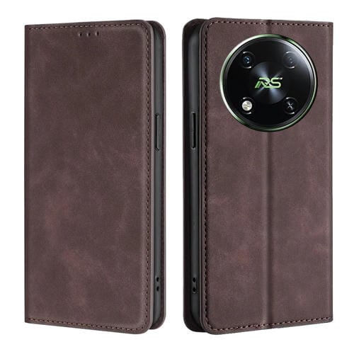 Funda de Cuero Magnética para Itel Rs4 4G Skin Feel (Marrón Oscuro)