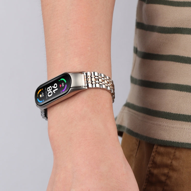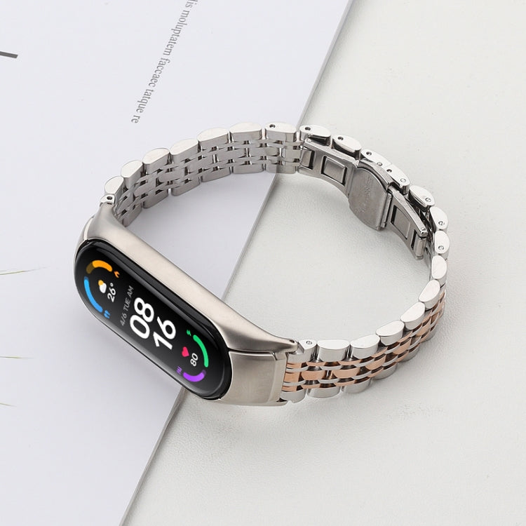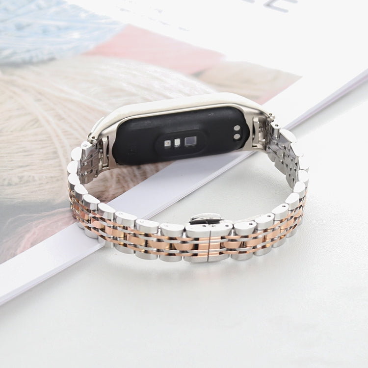 Para la banda Xiaomi Mi Band 6/5 de siete cuentas de acero inoxidable (oro rosa plateado)