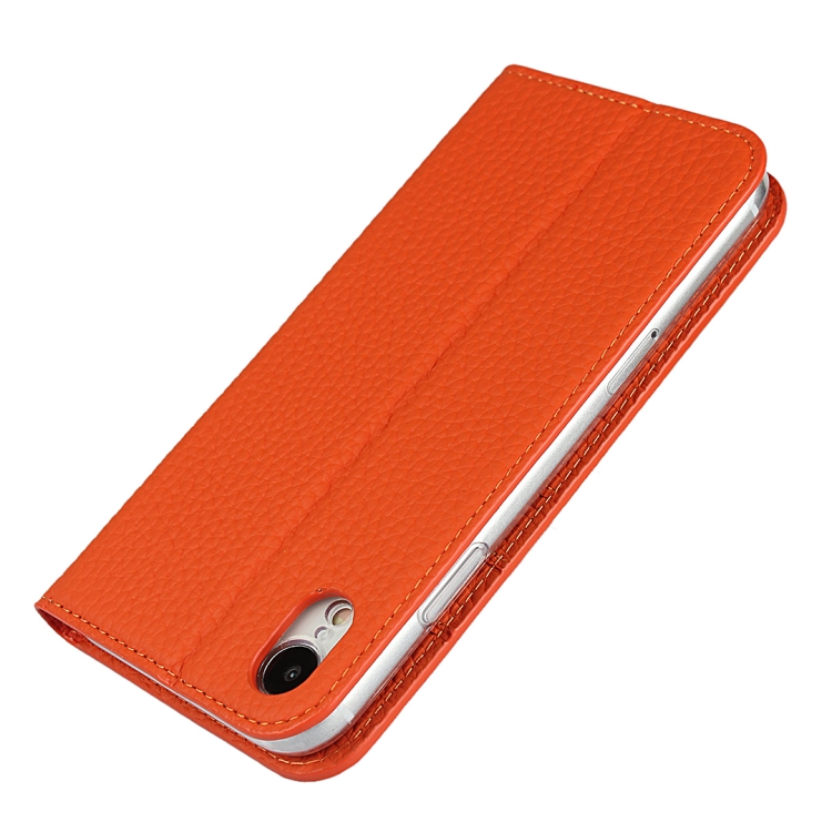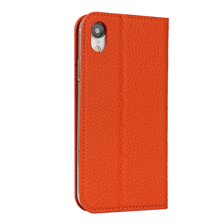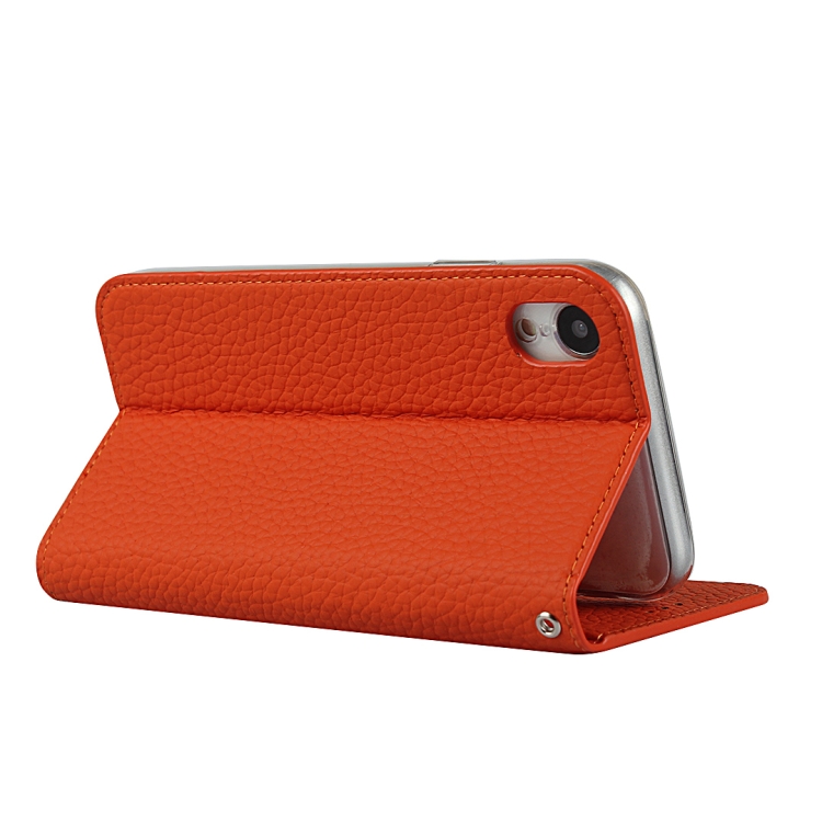 Funda para iPhone Xr Cuero Genuino Litchi Protección (Naranja)