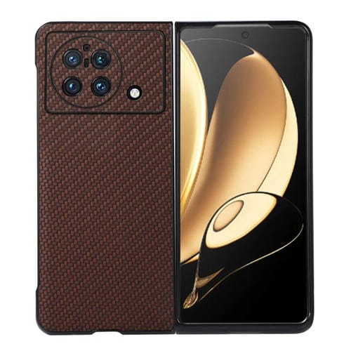 Para la Caja del Teléfono de la Pu de la Textura de la Fibra de Carbono del Orificio Preciso Vivo X Doble (Marrón)