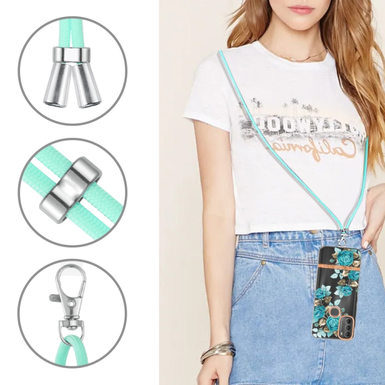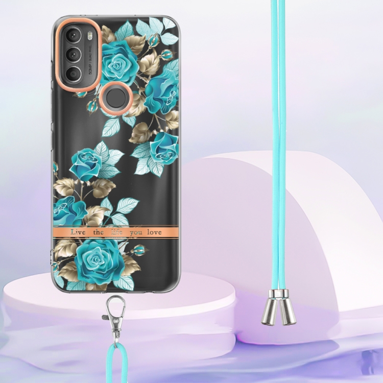 Para la caja TPU de la serie 5G Flowers Motorola G71 G71 con Lanyard (Blue Rose)