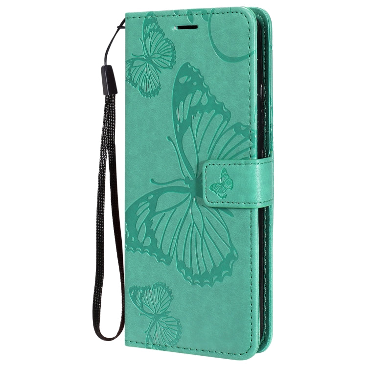 Funda de Cuero para LG K22 / K22 Plus 3D Mariposas En Relieve con Tapa Horizontal, Soporte y Ranura para Tarjeta (Verde)