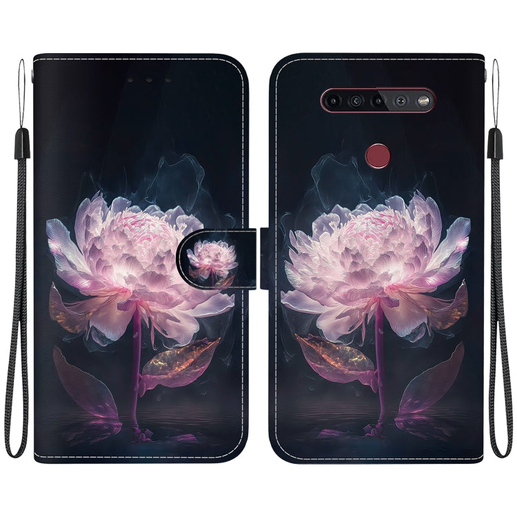 Funda para Teléfono LG K41S / K51S Cuero Dibujo Coloreado Textura de Cristal (Peonía Púrpura)