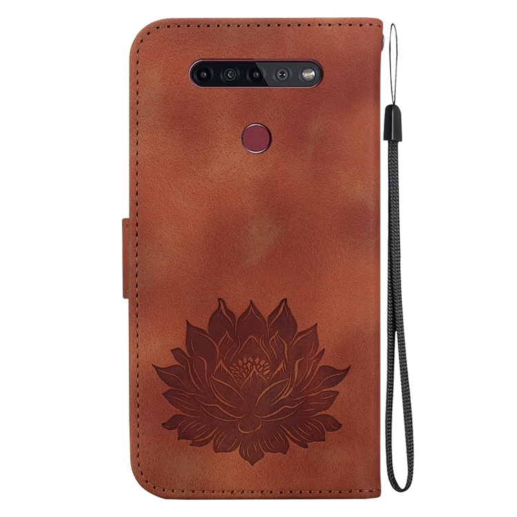 Funda para LG K41S y K51S de Cuero con Relieve de Loto (Marrón)