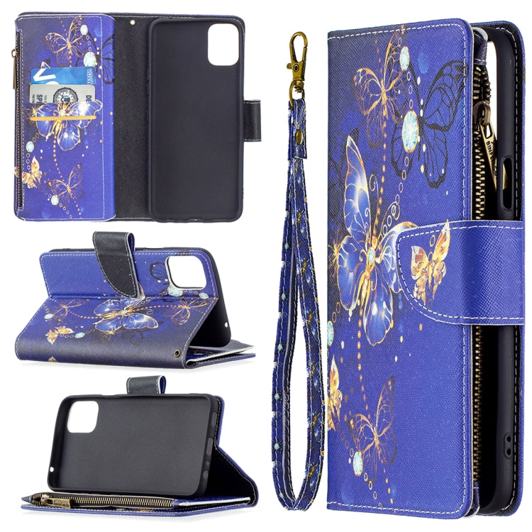 Funda Cuero para LG K42 con Cremallera, Soporte y Ranuras para Tarjetas (Mariposa Púrpura)