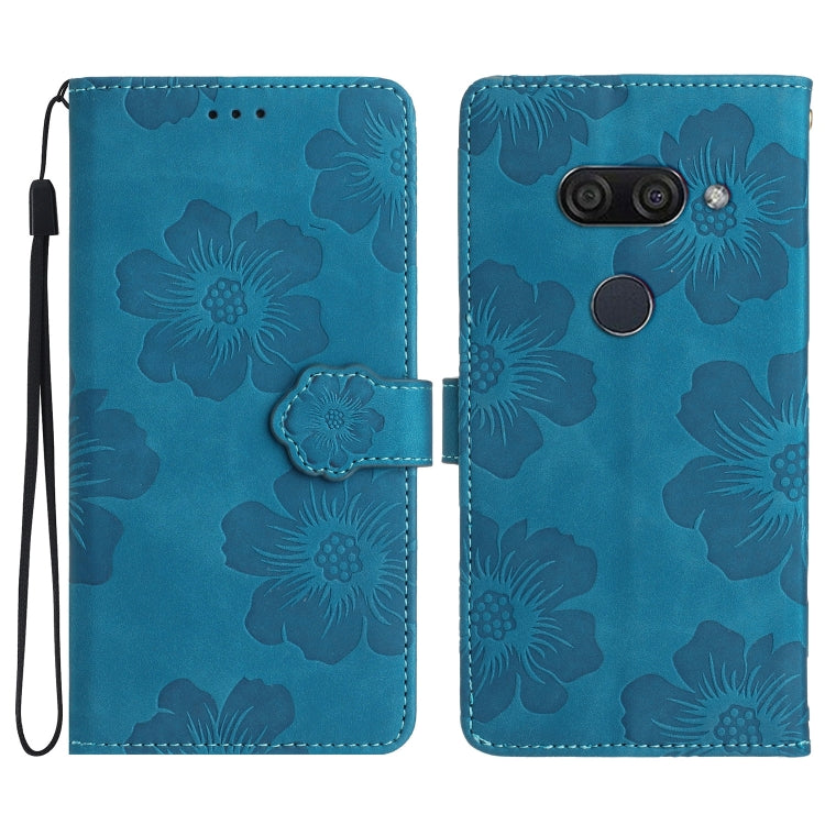 Funda de Cuero para LG K50 con Estampado de Flores en Relieve (Azul)