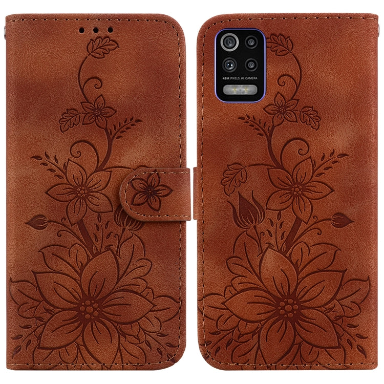 Estuche para Teléfono LG K52 / K62 / Q52 Cuero con Relieve de Lirio (Marrón)