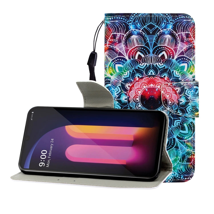 Funda de Cuero Abatible Horizontal para LG V60 con Dibujo Mandala, Soporte, Ranura para Tarjeta y Billetera