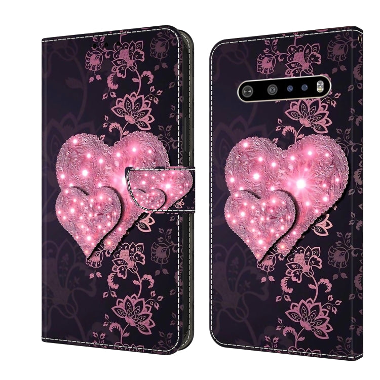 Funda Protectora de Cuero Crystal 3D para LG V60 Thinq 5G a Prueba de Golpes (Lace Love)