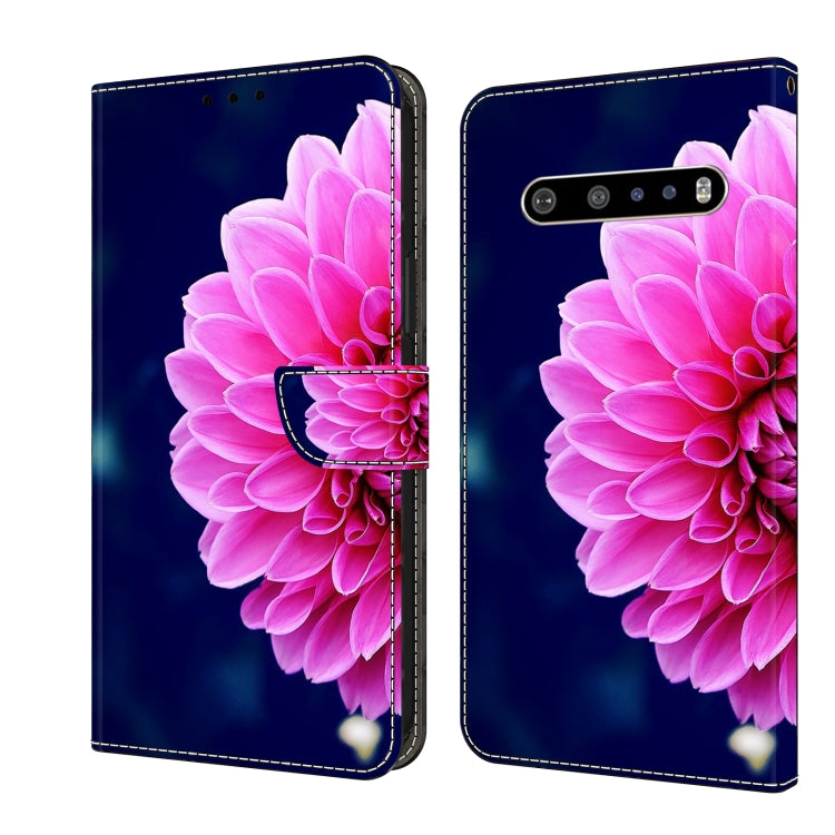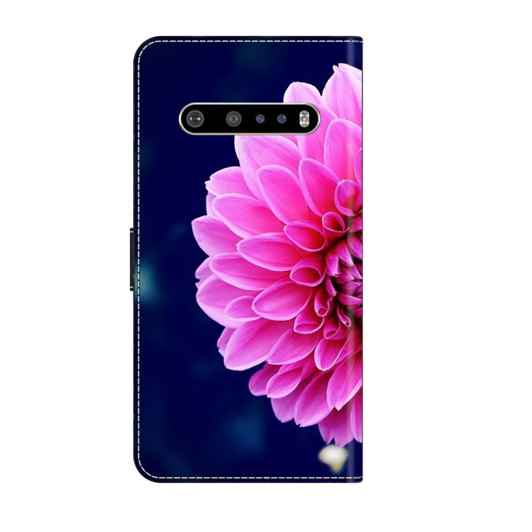 Funda Protectora de Cuero LG V60 Thinq 5G Crystal 3D a Prueba de Golpes (Pétalos de Rosa)
