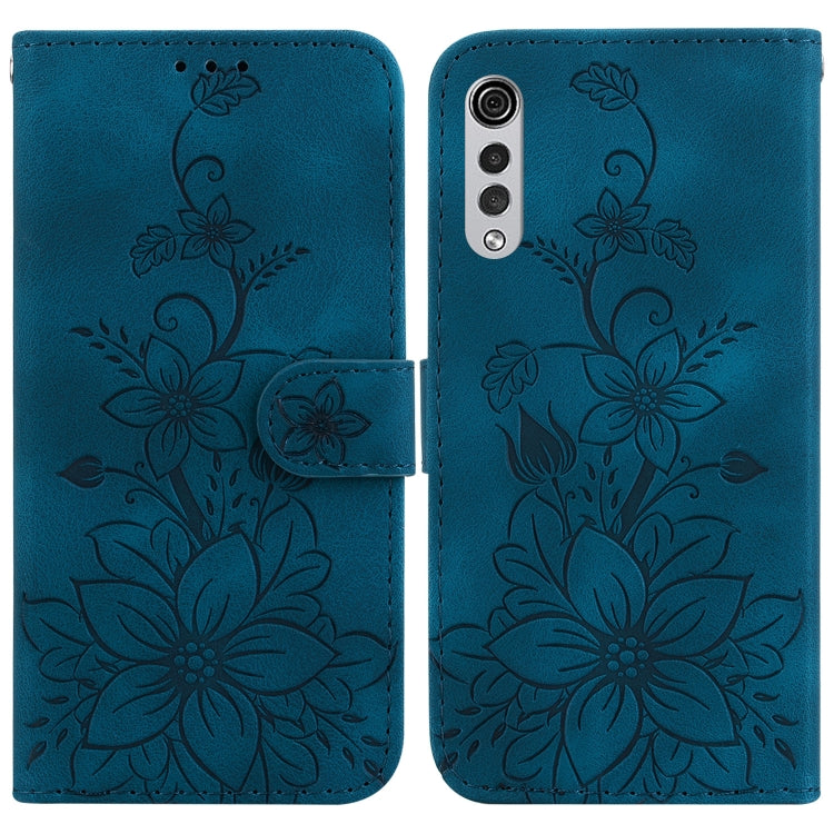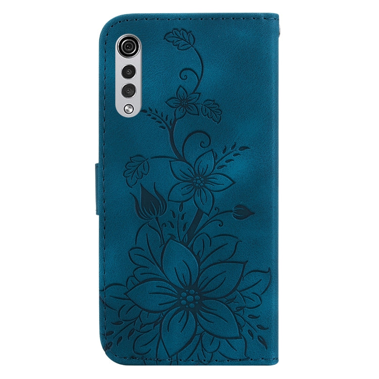 Funda para Teléfono LG Velvet 4G 5G G9 de Cuero con Relieve Lily (Azul Oscuro)