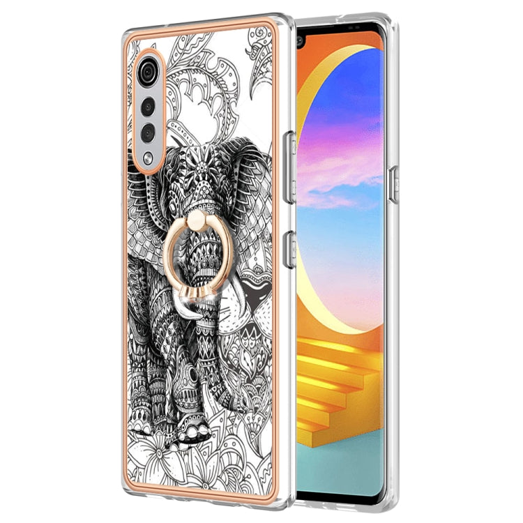 Funda para LG Velvet 5G / 4G / G9 Velvet Galvanoplastia Doble Cara con Soporte para Anillo (Totem Elephant)