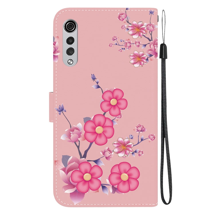 Estuche de Cuero para LG Velvet y G9 con Dibujo Coloreado y Textura de Cristal (Flores de Cerezo)