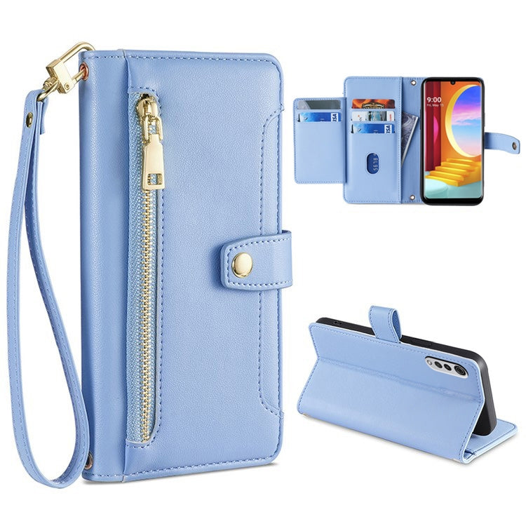 Funda de Cuero para Teléfono LG Velvet Sheep Texture Cross-Body Zipper Wallet (Azul)