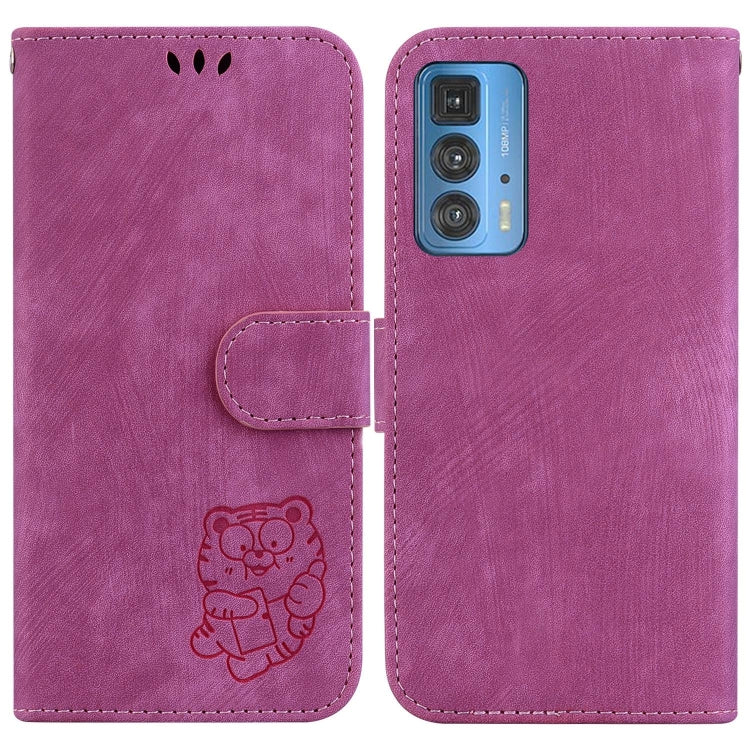 Estuche para Motorola Edge 20 Pro de Cuero con Relieve Little Tiger (Rojo Rosa)