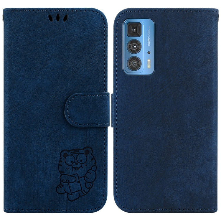 Funda de Cuero para Motorola Edge 20 Pro con Relieve Little Tiger (Azul Oscuro)